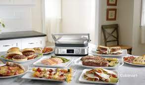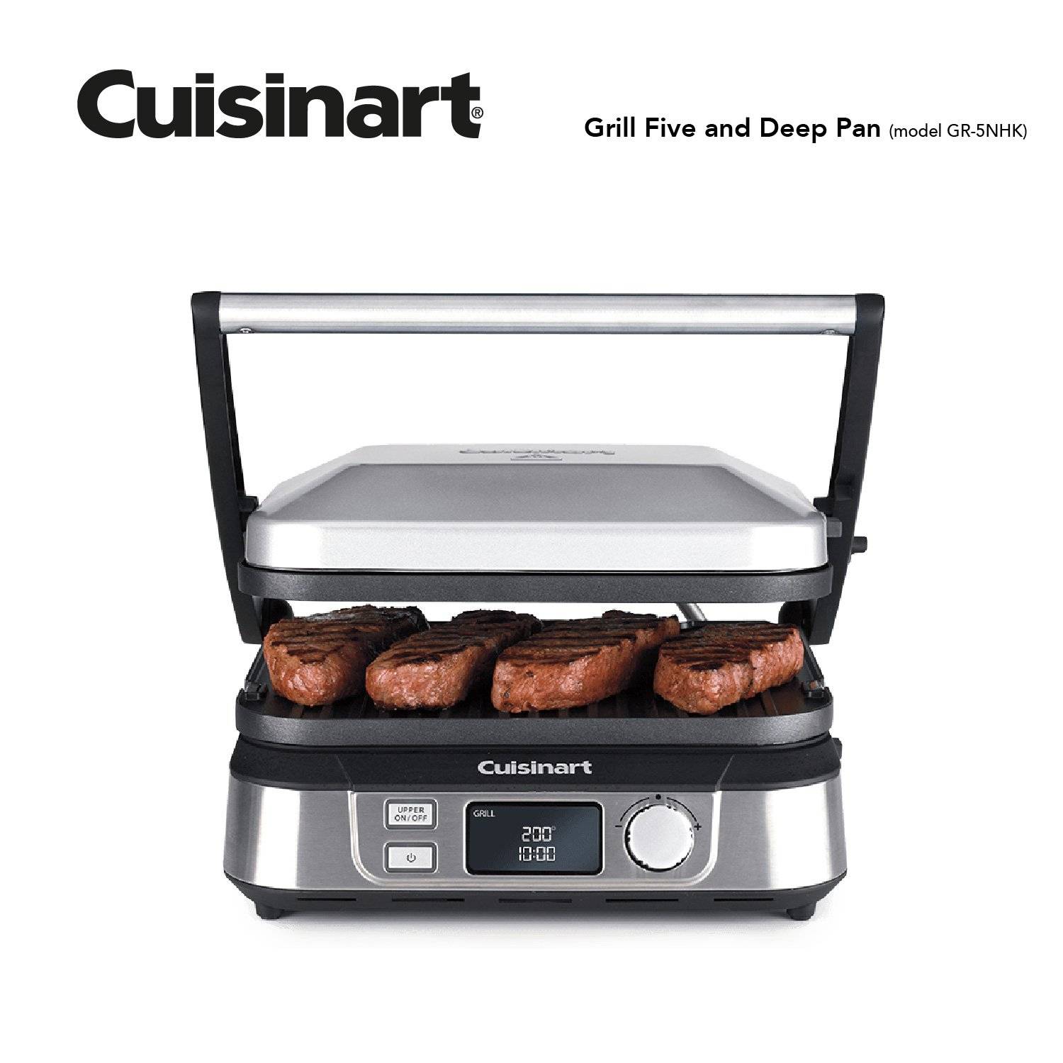 Vỉ nướng Cuisinart GN-5NHK 5 trong 1 có thể làm nhiều món ăn khác nhau .Nướng thịt, BBQ, nướng bánh mì, làm bánh,,,.Đặc biệt với tay ép dùng để ép thịt cho bớt mỡ và nước khi nướng ,rất được các vận động viên và người tập thể thao yêu thích.